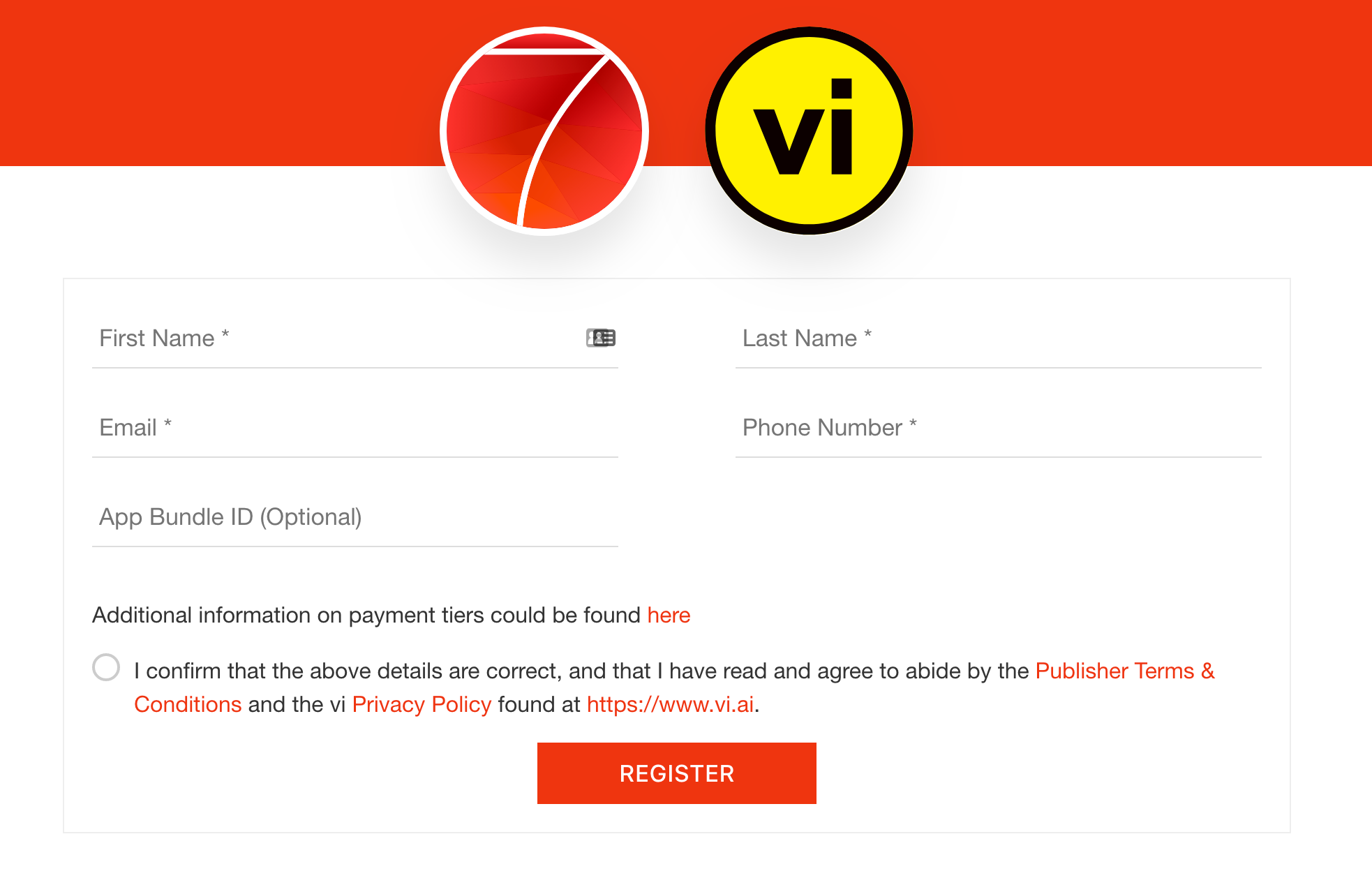 First of all as a mobile publisher you need to create **vi **publisher account. To signup for Framework7 vi account go to https://vi.framework7.io/ and fill up the following form: