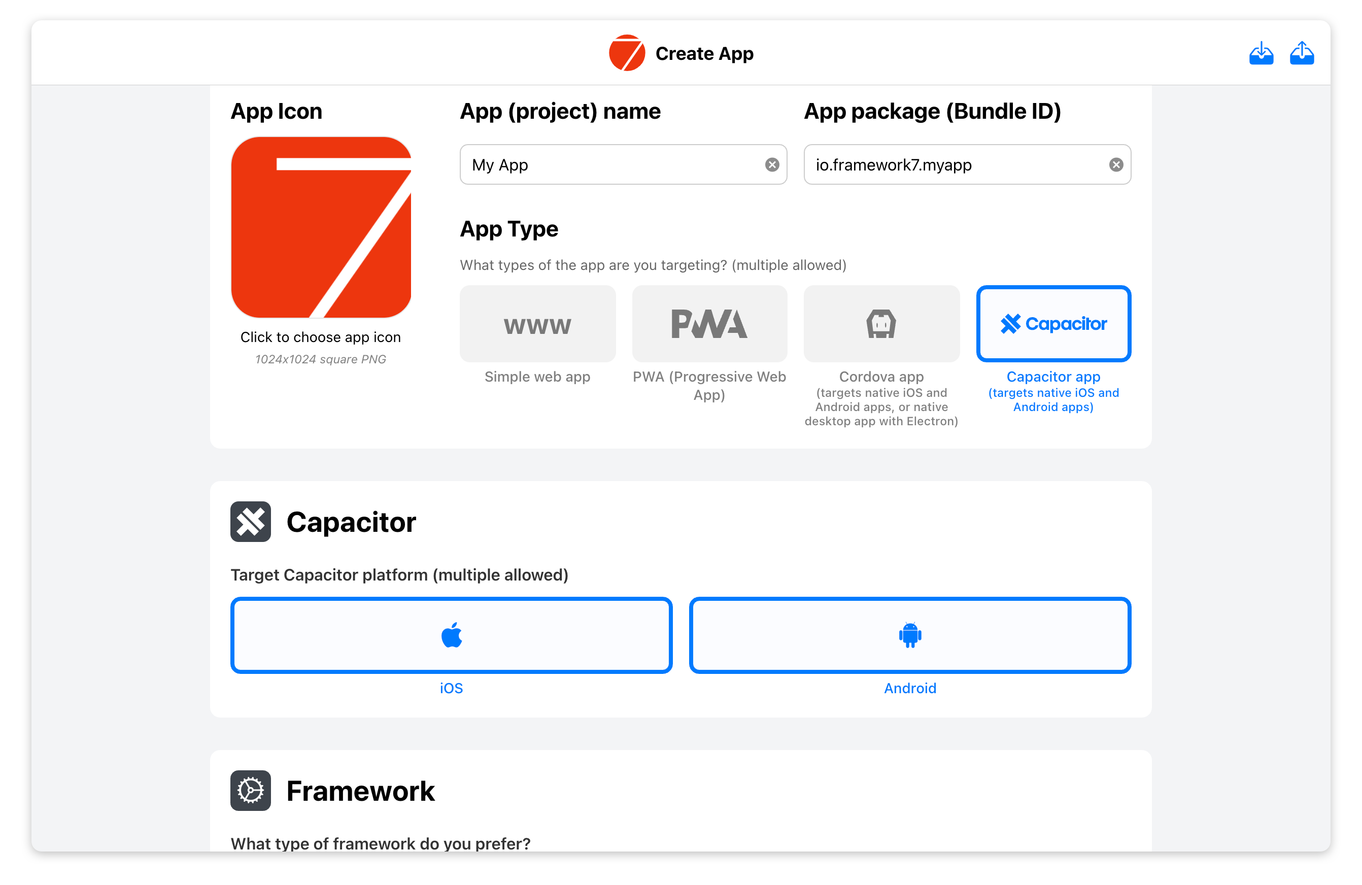 Framework7 now officially support Capacitor. We added support for core APIs when app is running under Capacitor environment (core Statusbar methods, automatic disabling of service workers and router browser history, etc.)